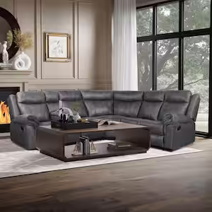 Harper & Bright Designs Home Theater 99.6 in. Flared Arm Polyester Reclining Sectional Sofa in Gray with Cup Holders and Charging Ports