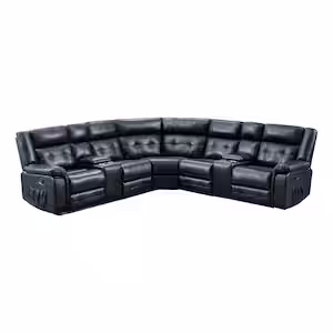 Amelia 110 in. Round Arm 3-Piece Faux Leather L-Shaped Sectional Sofa in Dark Blue with Reclining