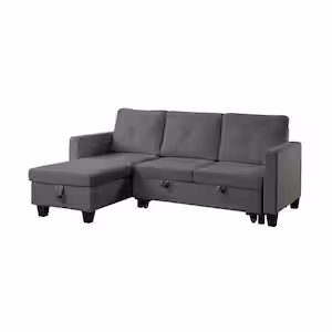 SIMPLE RELAX 82.5 in. W Velvet Reversible Sleeper Sectional Sofa with Storage Chaise in Dark Gray