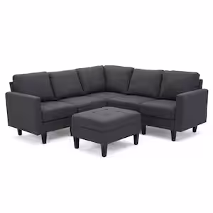 Noble House 32 in. Square Arm 6-Piece Polyester L-Shaped Sectional Sofa in Oxford Gray