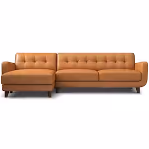 Ashcroft Furniture Co Curtis 113 in. W Square Arm 2-piece L-Shaped Left Facing Top Leather Corner Sectional Sofa in Cognac Tan (Seats 4)