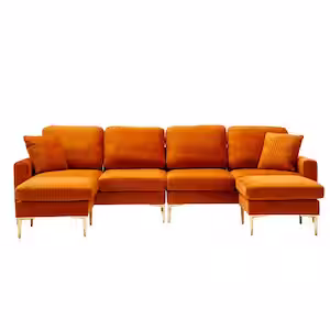 114 in. 4-piece U-Shape Orange Velvet Modern Upholstered Sectional Sofa with 2-Removable Ottomans