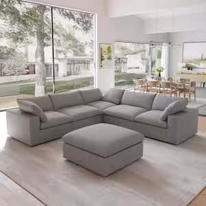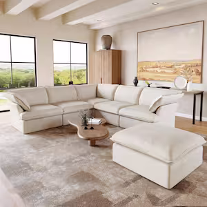 123 in. Overstuffed Linen Flannel L-Shaped Deep Seat Couch Modular 6-Seat Corner Sectional Sofa with Ottoman,Beige