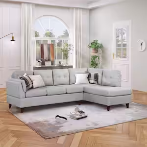 Harper & Bright Designs 97 in. Square Arm 2-Piece Linen L-Shaped Sectional Sofa in Gray with Chaise