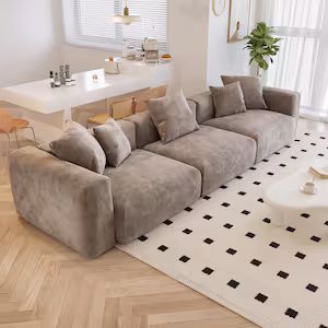 J&E Home 141.37 in. W Light Brown 3-piece Corduroy Velvet Square Arm 4-Seat Modular Free Combination Sectional Sofa with Pillows