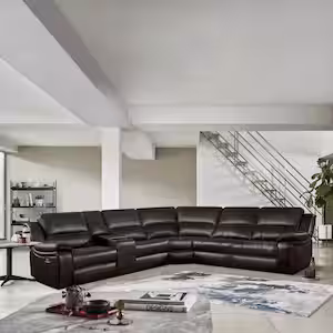 Clayton 135.5 in. Straight Arm 6-piece Faux Leather Modular Power Reclining Sectional Sofa in. Dark Brown