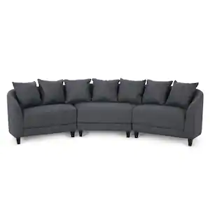 Noble House Raintree 109 in. Square Arm 3-Piece Fabric Curved Sectional Sofa in Charcoal/Dark Brown