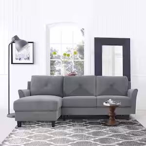 Lifestyle Solutions Taiz 1-Piece Ash Gray Channel Tufted Curve-Shaped Left Facing Sectional Fabric Sofa with Wood Legs