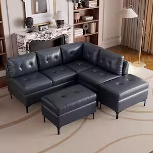 Harper & Bright Designs 94.88 in. L Shaped Faux Leather Modern Corner Sectional Sofa in Dark Blue with 2-Storage Ottomans