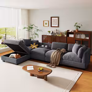 Nestfair 104 in. Square Arm 3-Piece Velvet Upholstered L-shaped Sectional Sofa in Gray with Storage Ottoman