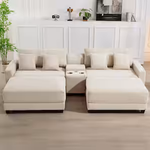 Harper & Bright Designs 128.3 in. W Modern Large U-shape Polyester Sectional Sofa in. Beige with Hidden Storage and Lumbar Support Pillows