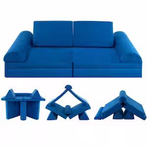 Costway 66 in. Rolled Arm 8-piece Suede Sponge Modular Kids Play Sofa Set Sectional Sofa in. Blue