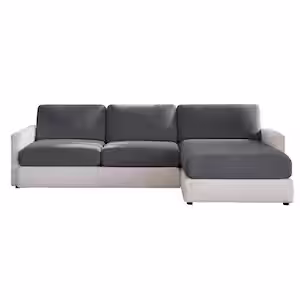 Sure-Fit Cedar Stretch Washed Black Polyester Textured Sectional Small Sofa Cushion Slipcover