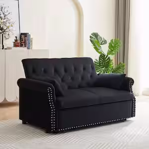 J&E Home 68.9 in. W Black Velvet Twin Size Convertible Sofa Bed with Adjustable Backrest