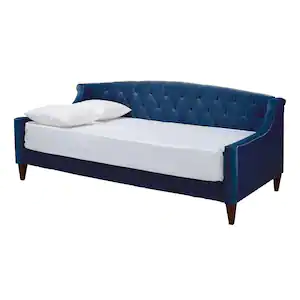 Jennifer Taylor Lucy 84 in. Navy Blue Velvet 2-Seater Twin Sleeper Sofa Bed with Tapered Legs