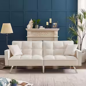 Seafuloy 74.4 in. White Velvet 2-Seats Sofa Bed with Armrests and 2-Pillows