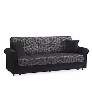 Ottomanson Santiago Collection Convertible 89 in. Black Chenille 3-Seater Twin Sleeper Sofa Bed with Storage