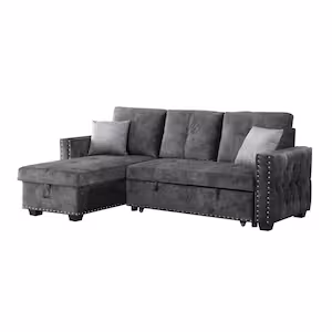 90 in. Dark Gray Corner Sofa-Bed with Storage 3 Seat Both Left Handed and Right Handed