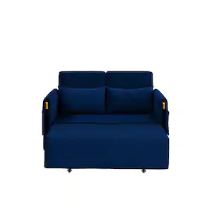 54 in. Blue Velvet Straight Convertible Full Sofa Bed with 2 Detachable Arm Pockets with Pull Out Bed and Headboard