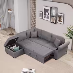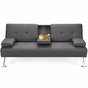 FORCLOVER 66 in. Gray Linen Convertible Twin Sleeper Sofa Bed with 2-Cup Holders