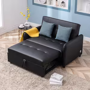 Qualler 52 in. Width Black PU Leather Twin Size Convertible Sofa Bed