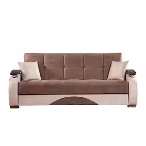 Ottomanson Divine Collection Convertible 84 in. Brown Microfiber 3-Seater Twin Sleeper Sofa Bed with Storage