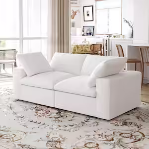 Magic Home 80.3 in. Linen Flannel Upholstered Loveseat Living Room 2 Wide Seats Sofa Couch in White