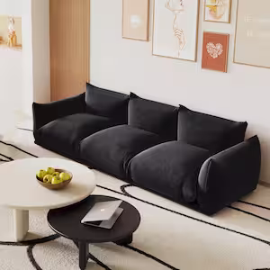 Magic Home 103.93 in. Luxury Wide 3 Seater Minimalist Sofa Couch Flared Arm Chenille Floor Level for Living Room, Black
