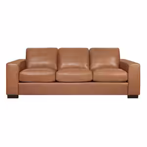 Hydeline Newport 94 in. W Rolled Arm 100% Leather Chesterfield Straight 3-Seater Sofa in Caramel Brown
