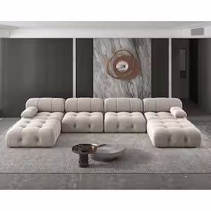 J&E Home 138 in. W Square Arm Velvet U Shaped 4-piece Free combination Modular Sectional Sofa with Ottoman in Beige
