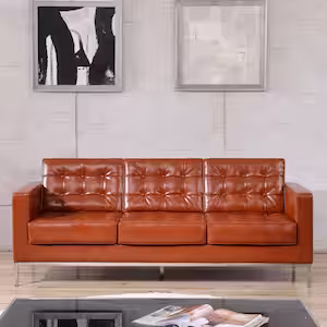 Carnegy Avenue 80 in. Cognac Faux Leather 3-Seater Bridgewater Sofa with Removable Cushions
