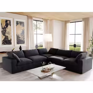 Magic Home 120 in. Modular Barong Linen Flannel Fabric Comfy Large 5-Seat L-shape Corner Free Combination Sectional Sofa, Black