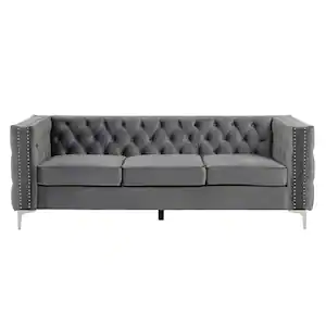 Morden Fort 85 in. Square Arm 3-Seater Removable Cushions Sofa in Grey