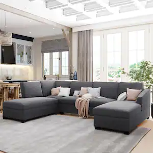 Harper & Bright Designs 117 in. Flared Arm 4-Seater Removable Cushions Sofa in Gray