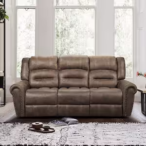 Arella 88 in. W Straight Arm Microfiber Rectangle Double Manual Reclining Sofa in Brown
