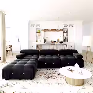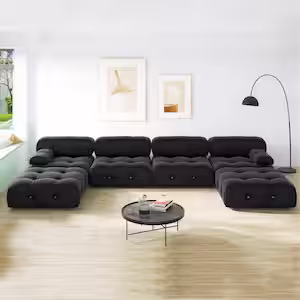 Magic Home 139 in. Square Arm 6-Seater Sofa in Black