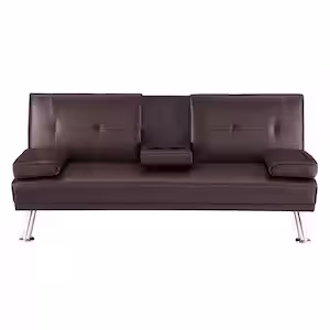 MAYKOOSH 66 in. Square Arm 2-Seater Convertible Sofa in Espresso