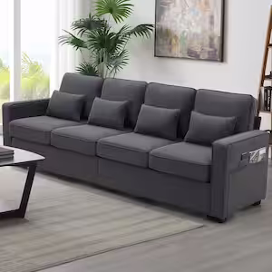 Harper & Bright Designs 104 in. W Square Arm Linen Upholstered Rectangle Sofa in. Dark Gray with Armrest Storage Pockets and 4-Pillows