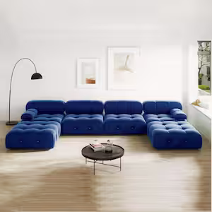 Magic Home 139 in. Square Arm 6-Seater Velvet Convertible U-Shaped Modular Sectional Sofa with Ottomans in Blue