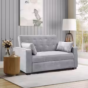 Serta Augustus 66.5 in. Light Grey Polyester Full Size Sofa Bed