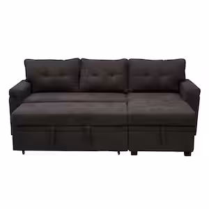 HOMESTOCK Espresso Tufted Sectional Sofa Sleeper with Storage Twin Size Sofa Bed Fabric Velvet