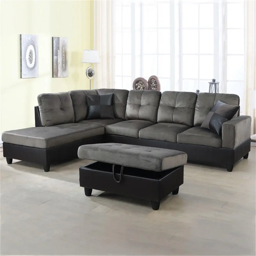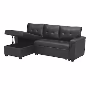 HOMESTOCK Black Tufted Sectional Sofa Sleeper with Storage Twin Size Sofa Bed Fabric Air Leather