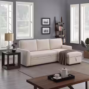 Morden Fort Reversible 90.5 in. White Velvet Sleeper Sectional Sofa L-Shape 3-Seat Sectional Couch with Storage