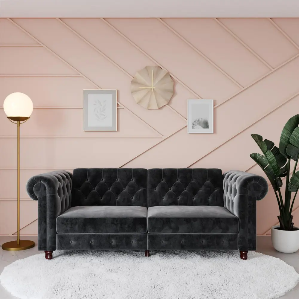 DHP Felix Chesterfield Coil Sofa Futon, Grey Velvet
