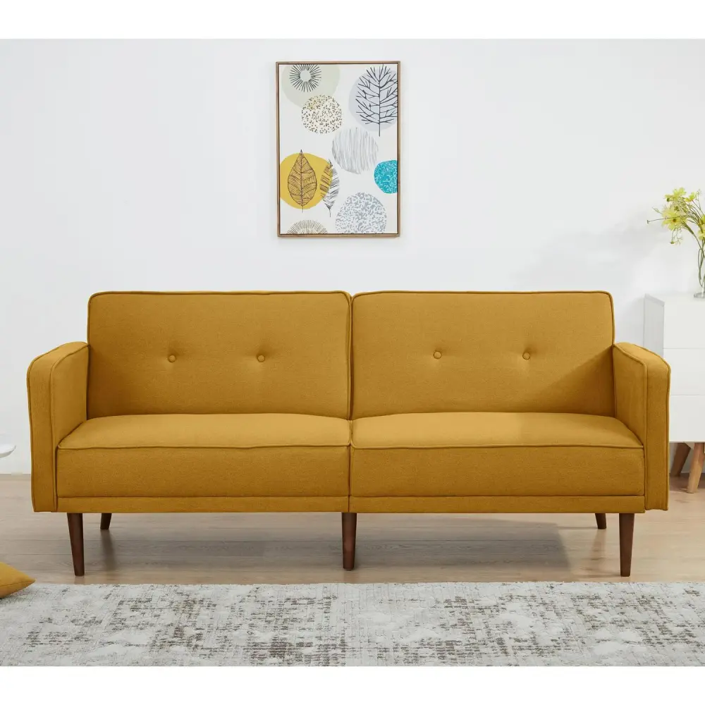 A&D Home Moreno Polyester Split Back Convertible Sofa, 3 Person Tufted Couch, Yellow