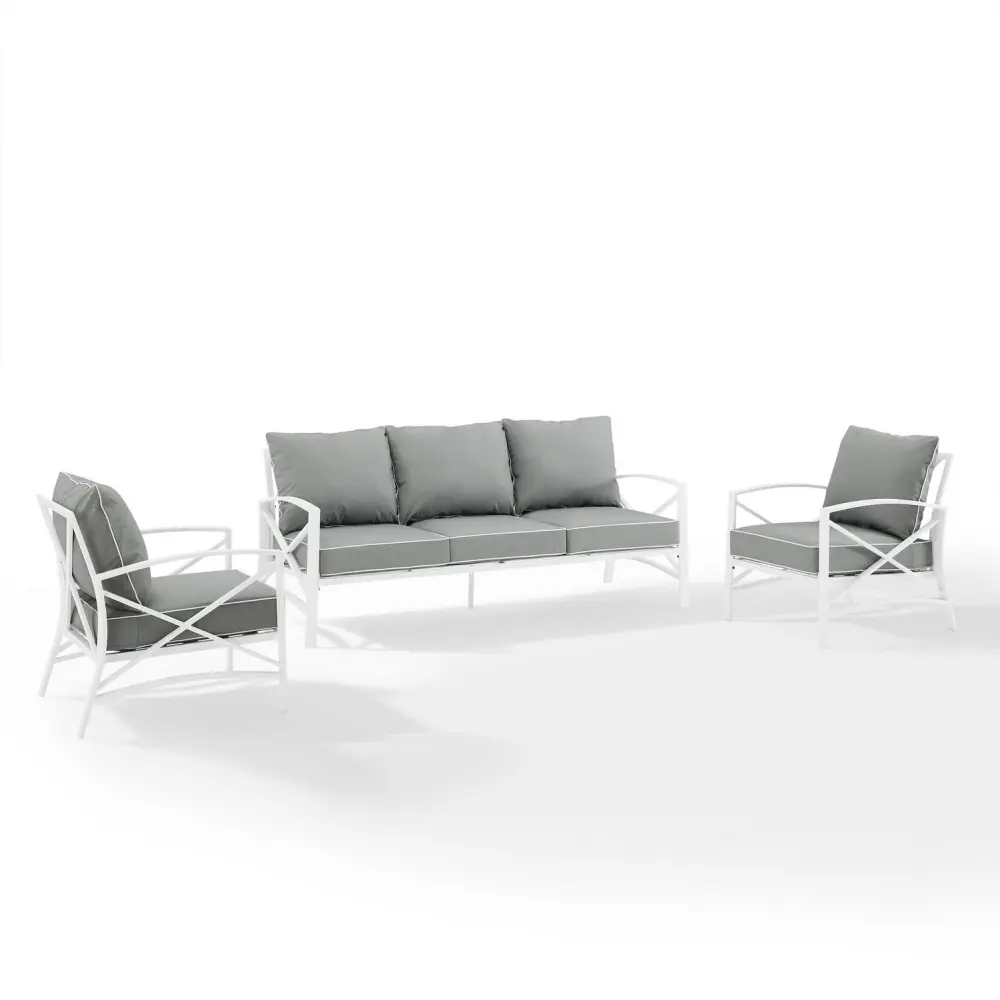 Crosley Furniture Kaplan White 3 Piece Outdoor Sofa Set with Gray Cushions