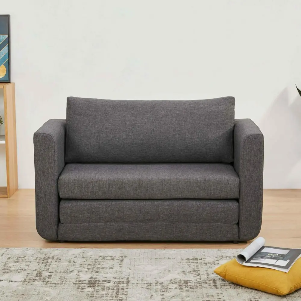 A&D Home Afton Faux Linen Loveseat, 2 Person Compact Sleeper Sofa Bed, Dark Gray