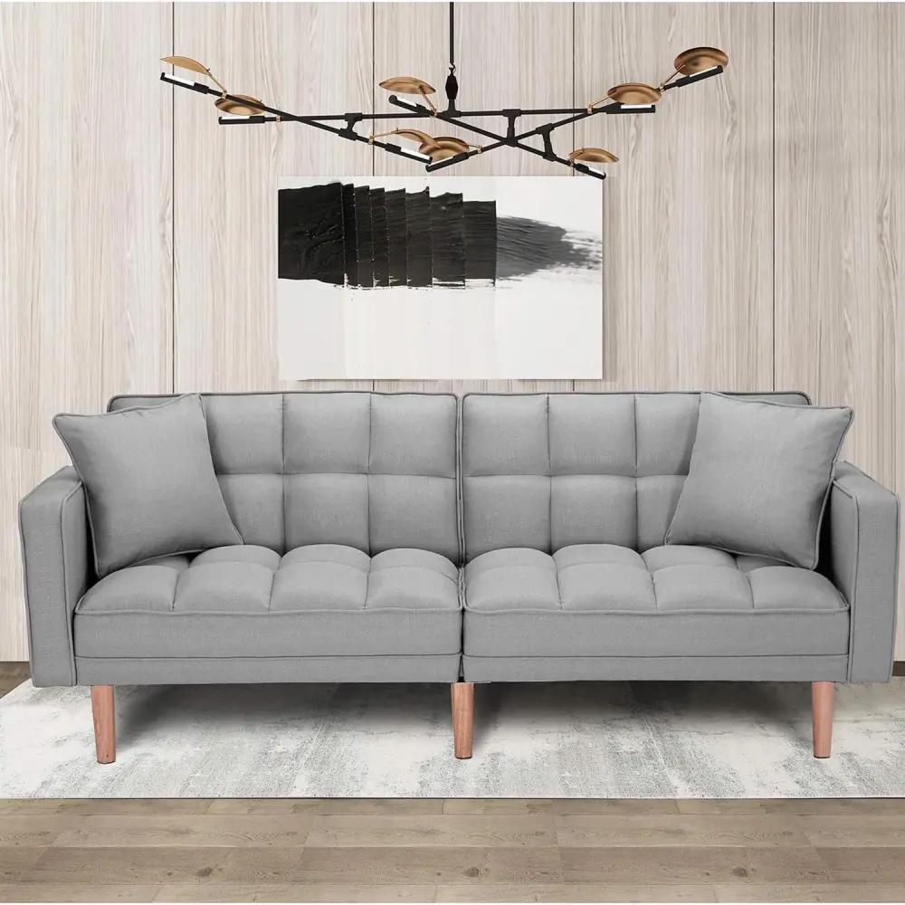 Convertible Futon Sofa Bed with 2 Pillows, Fabric Convertible Single Bed for Compact Living Space, Apartment, Dorm – Light Gray