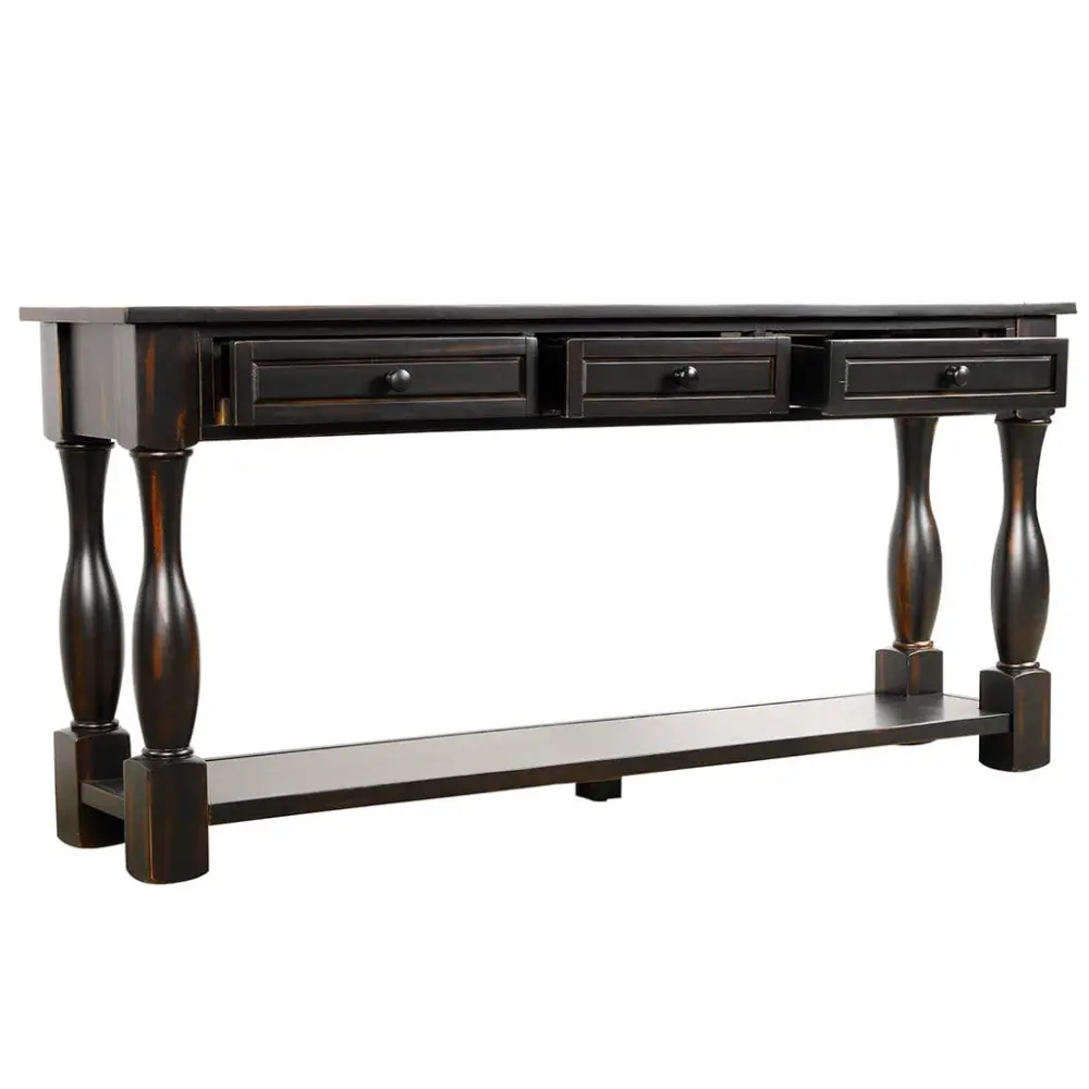 64 inch Long Console Table with Drawers and Shelf Home Entryway Hallway Living Room Sofa Table, Black
