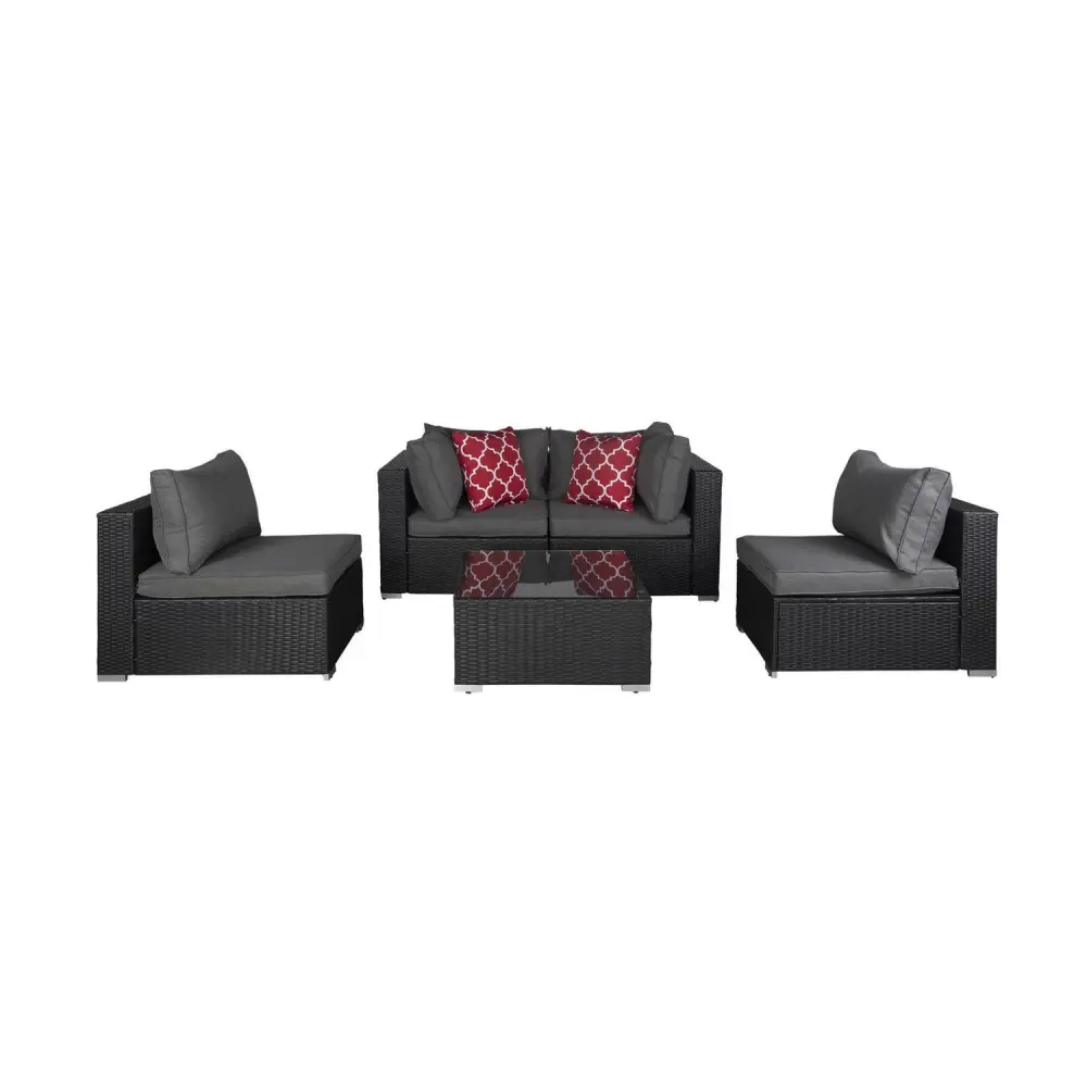 5-Piece Outdoor Patio Rattan Wicker Sofa Conversation Set with Coffee Table and Cushions, Espresso/Gray